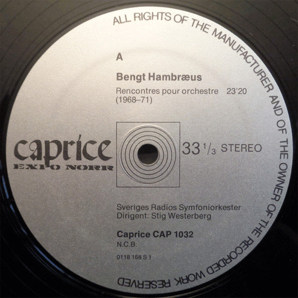 Bengt Hambraeus / Lars-Erik Larsson - Sveriges Radios Symfoniorkester, Stig Westerberg ~ Rencontres Pour Orchestre / Due Auguri