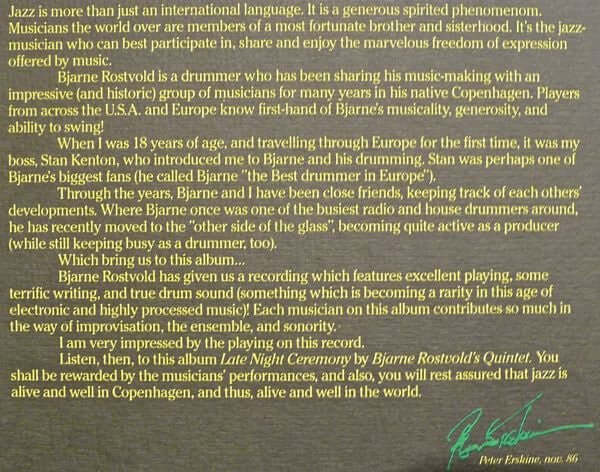 Bjarne Rostvold Quintet ~ Late Night Ceremony