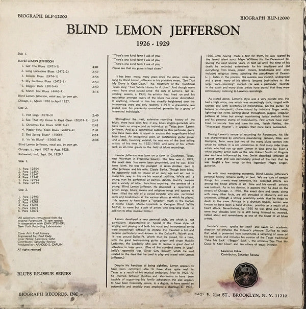 Blind Lemon Jefferson ~ 1926-29