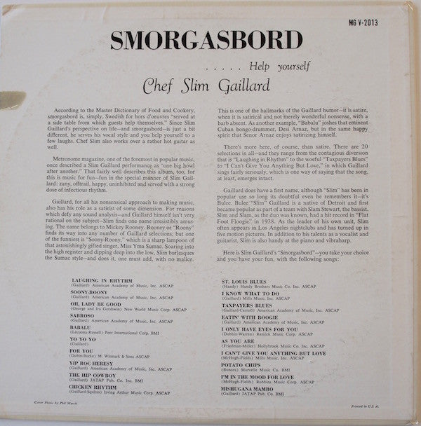 Chef Slim Gaillard ~ Smorgasbord..... Help Your Self