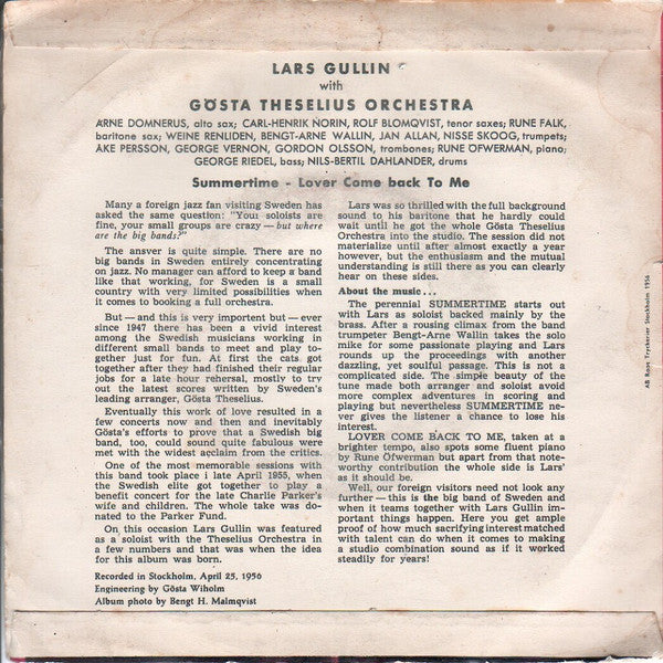 Lars Gullin With Gösta Theselius Orkester ~ Summertime / Lover Come Back To Me